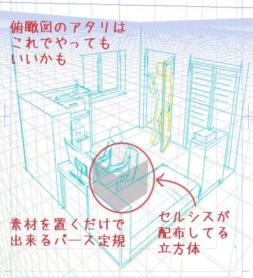 クリスタ パース定規 使い方 俯瞰