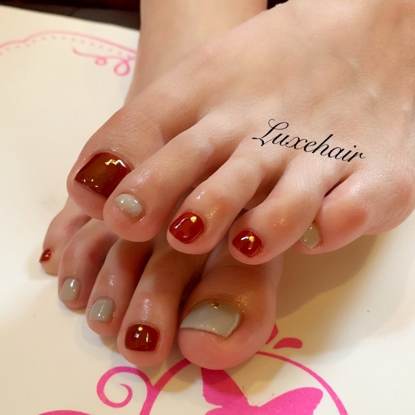 グレージュ フット ネイル グレー ボルドー