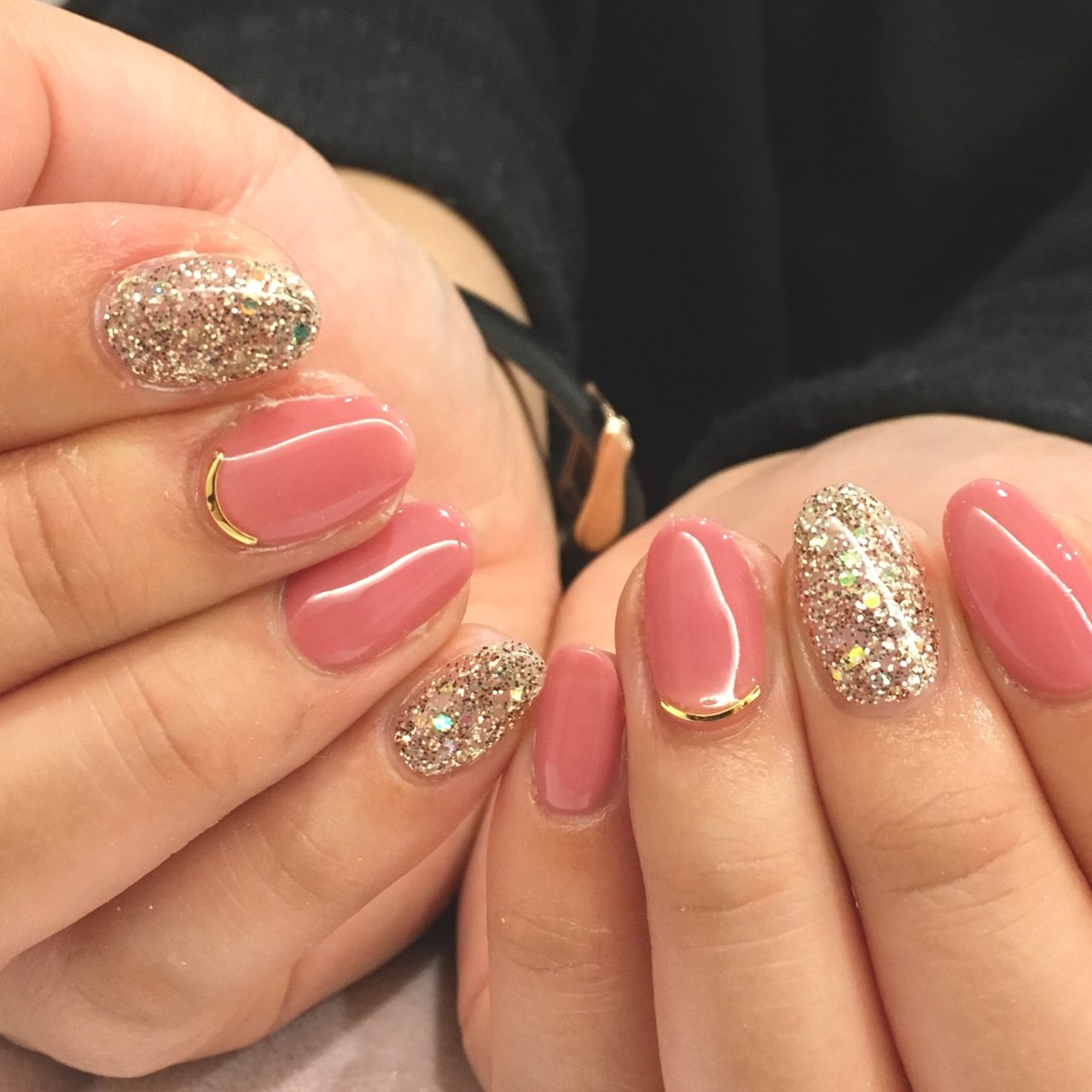 ジェル ピンク ゴールド ネイル