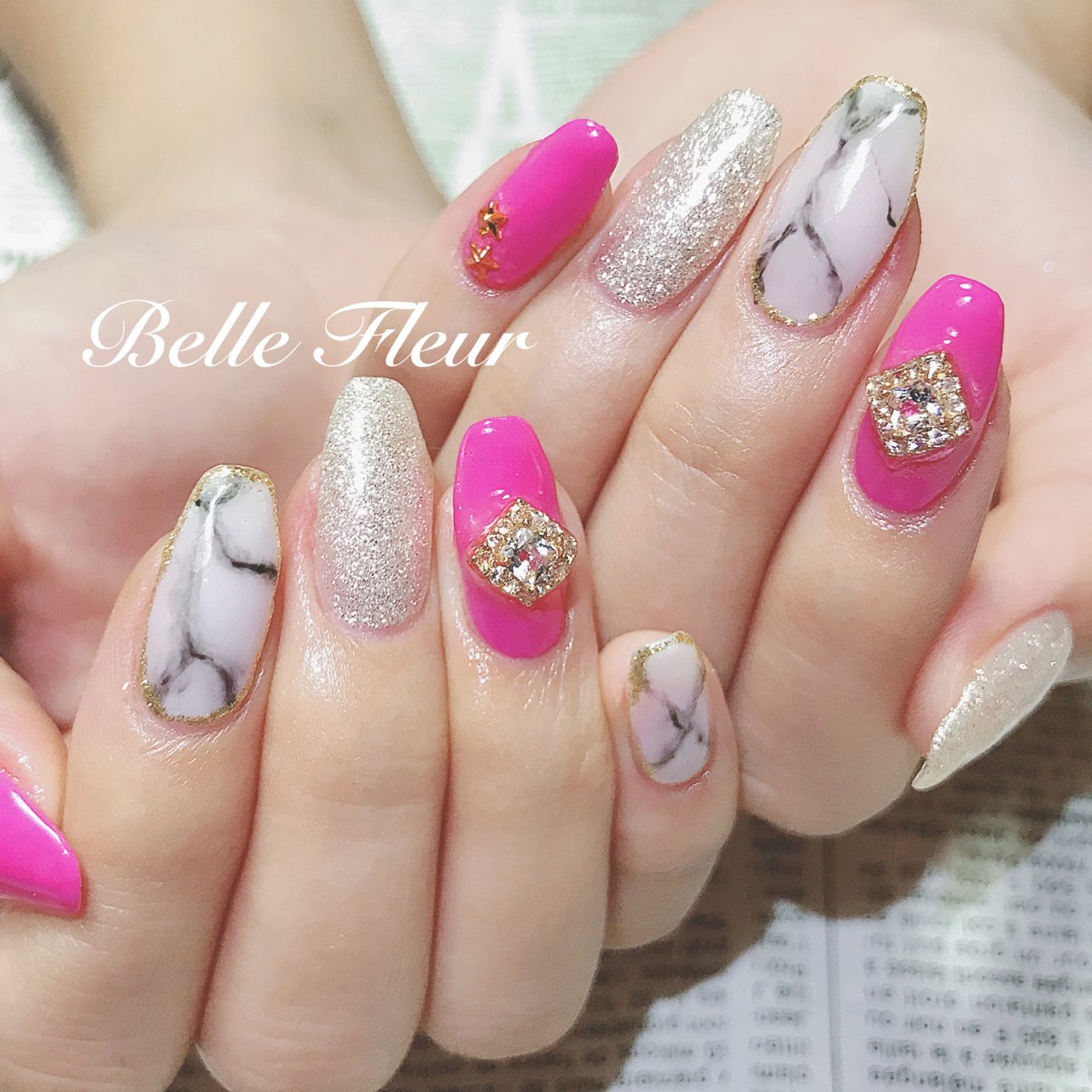 ジェル ピンク 大理石 ネイル