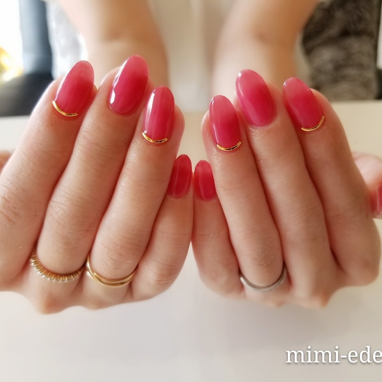 ネイル 赤 ピンク シンプル