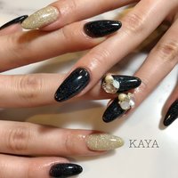 ネイル 黒 ゴールド シンプル